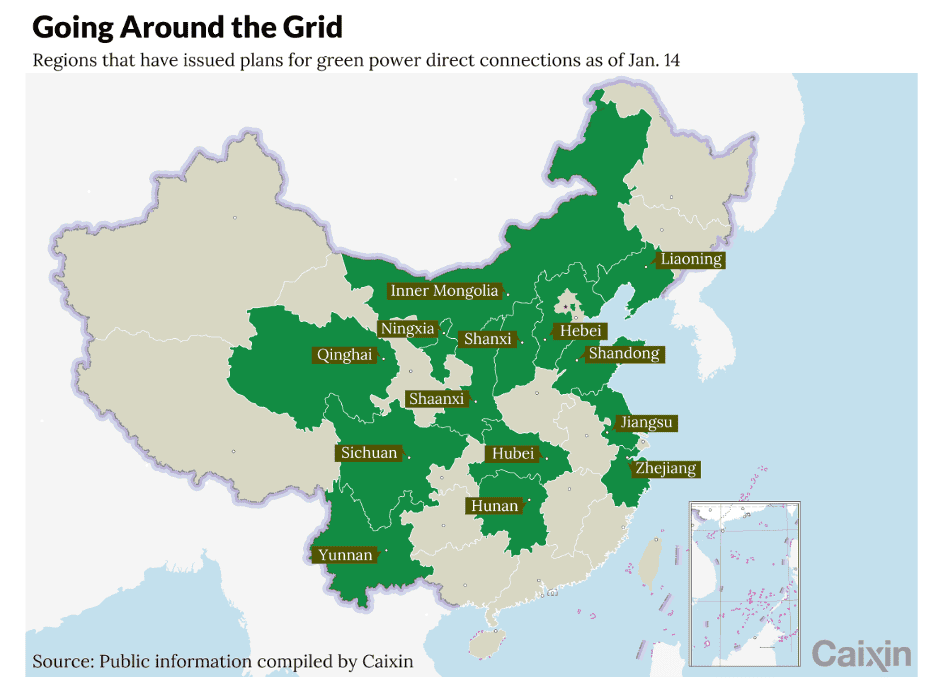 “China Takes on Green Energy Gridlock With Direct Connections – Unlike most wind farms across China, the 500-megawatt facility run by Swan Electric Power in Sanmenxia in the central province of Henan does not feed electricity into the national grid. Rather, it delivers power through a dedicated transmission line into a self-operated distribution network, bypassing the state-run utility system to directly supply end users. This setup — known as a “green power direct connection” — is emerging as one of Beijing’s most closely watched experiments in fixing a growing imbalance that has emerged from China’s energy transition. The country has built renewable capacity faster than its grid can handle it, leading to widespread waste. The policy-backed direct connection model is expected to ease pressure on the grid, lower energy costs for factories, and create an outlet for projects that might otherwise sit idle.”, Caixin Global, January 23, 2026