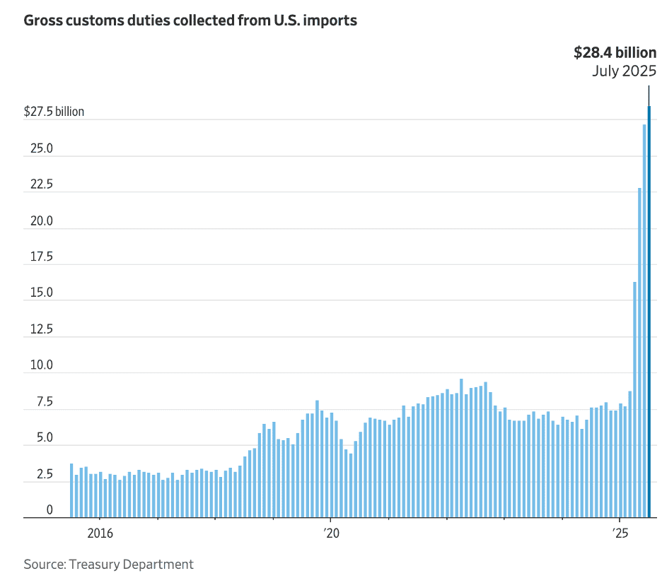 U.S. Small Businesses Brush Off Tariff Fears – The main drivers of July’s better sentiment were respondents reporting improved business conditions and willingness to invest to expand. The National Federation of Independent Business said Tuesday that its optimism index, a gauge of sentiment among small firms, improved to 100.3 in July from 98.6 in June, taking it further above the 98 point that marks the index’s long-term average. The main drivers of July’s better sentiment were respondents reporting improved business conditions and willingness to invest to expand, a good sign for the country’s economic prospects ahead.”, The Wall Street Journal, August 12, 2025